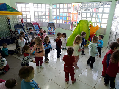 Na manhã de 11 de junho, terça-feira, a turma do Maternal realizou visita educativa na casa do colega Francisco Bueno de Campos, localizada na rua Anselmo Toaldo, Loteamento Vila 7 de Julho. Atividade proposta a partir do projeto "CADA FAMÍLIA, UMA HISTÓRIA". O objetivo contemplou a socialização de culturas.